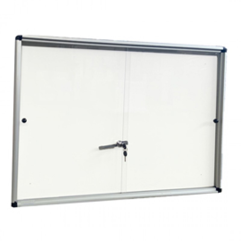 Bacheca Starline per interni in alluminio con fondo magnetico ad ante scorrevoli. Ante in policarbonato trasparente. Formato: 6xA4 ORIZZONTALE Formato esterno: 700x650x45mm.