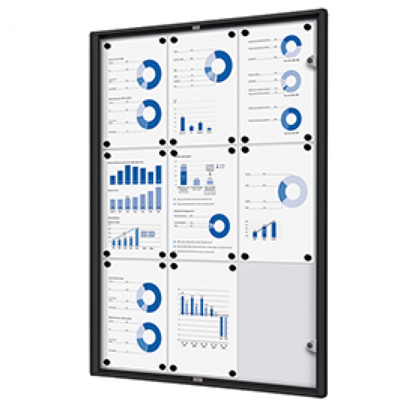 Bacheca per interni - con ante battenti - 9 fogli A4 - cornice nera - verticale - Showdown