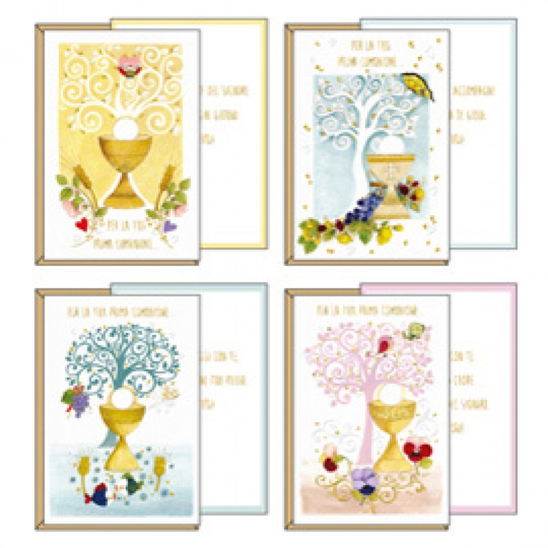 Biglietto auguri - Comunione - c/finiture in oro a rilievo - soggetti assortiti - 11,7 x 17 cm - Kartos