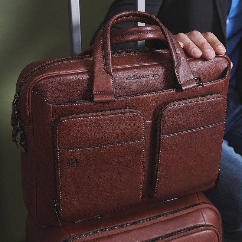 Borsa Piquadro espandibile porta pc in pelle Blue Square