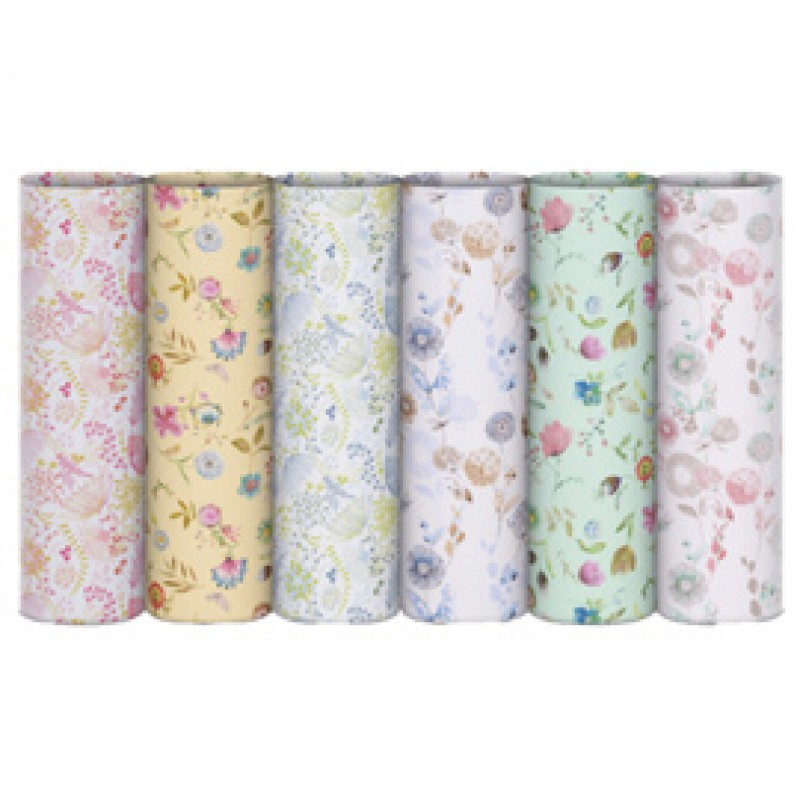 Carta da regalo 65gr/m2 riciclata al 100%. 6 fantasie assortite.