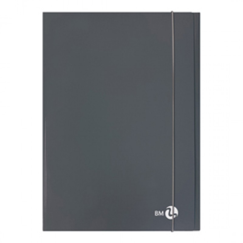 Cartella 3 lembi con elastico - A4 - dorso piatto - grigio scuro - BM