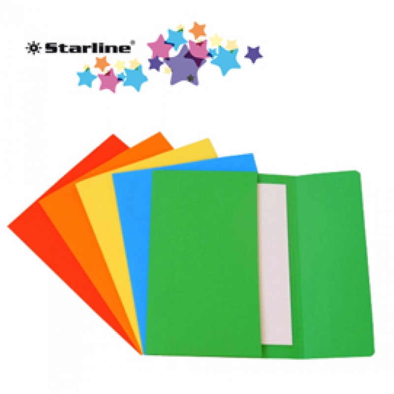 Cartelline a busta STARLINE in robusto cartoncino bristol 200gr formato 26x34cm. Dotate di soffietti da 3cm sui lati e sul fondo. Confezione da 25 cartelline assortite in 5 colori brillanti: rosso, azzurro, verde, giallo, arancio.