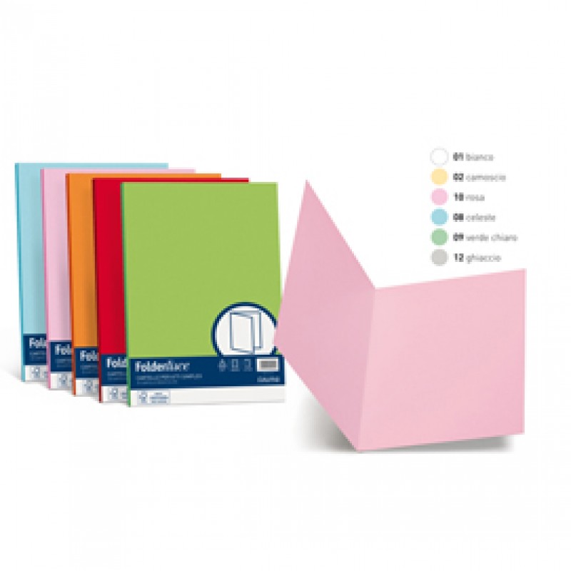Cartelline semplici in cartoncino bristol liscio su ambo i lati in colori accesi. Formato 25x34cm.