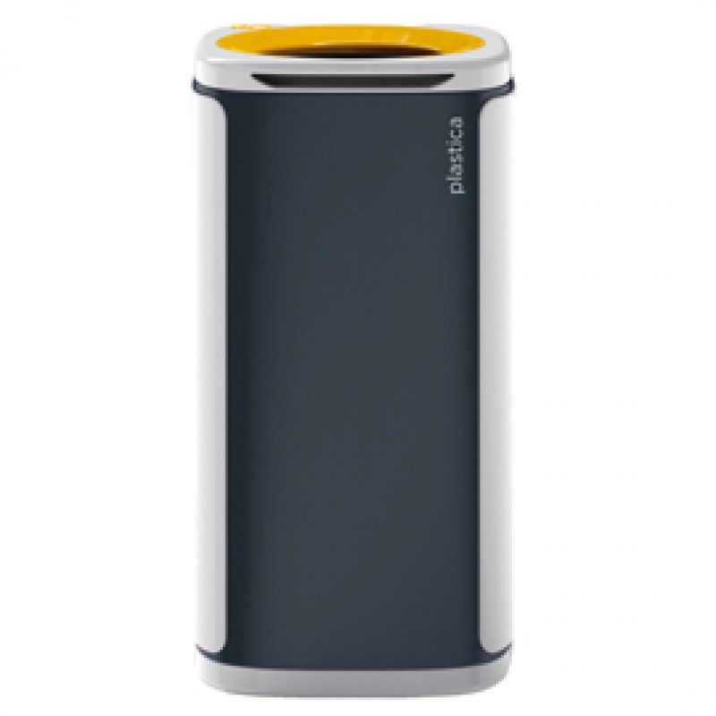 Il design elegante e moderno permette la sua collocazione in ogni tipo di ambiente. Ideale per creare isole ecologiche in ufficio e negli spazi pubblici. Due aree circolari, presenti ai lati della scocca esterna, contengono dei magneti per far agganciare facilmente i vari moduli. Contenitori stabili costruiti in ABS e PP riciclabilial 100% riciclabili. Facile e veloce il sistema per lo svuotamento del sacco con apertura a basculante del coperchio. Capacità cestino 60 lt. Dimensioni: (LxPxH) 34x34,5x70,5.
