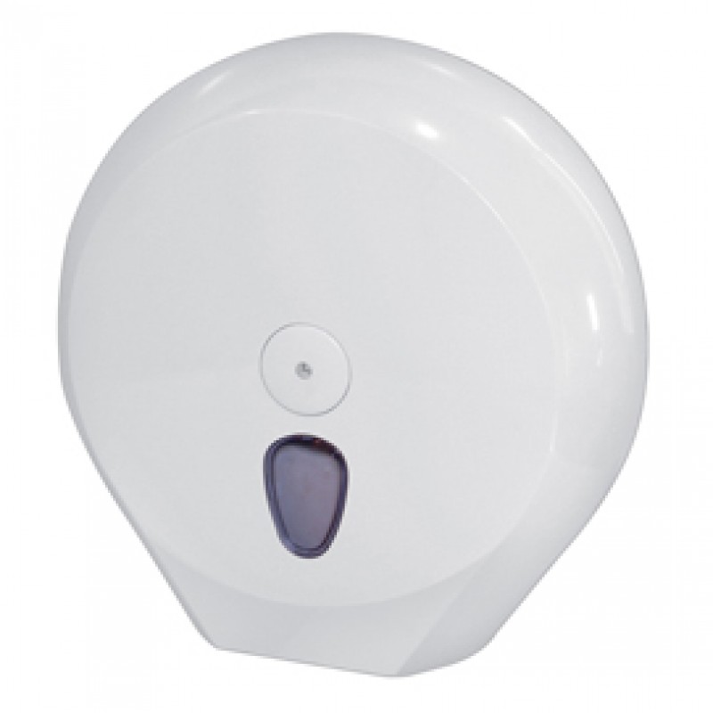 DISPENSER MURALE PER CARTA IGIENICA in ROTOLI minijumbo CON DIMENSIONI MASSIME DIAMETRO 23cm. DIMENSIONI DISPENSER H27,3 X P12,8 X L27cm. COLORE BIANCO coordinato linea Plus.