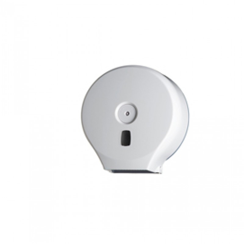 Dispenser carta igienica in ABS, di colore bianco. Per rotoli Minijumbo. Dimensione: 28,2x12x29,4cm. Capacità 25,5cm. Pulizia periodica da effettuare con un panno morbido e non abrasivo, imbevuto d’acqua. Detergenti che contengono solventi possono danneggiare il materiale.