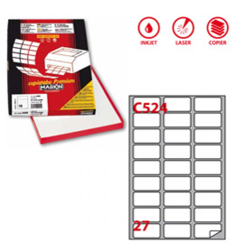 Etichette adesive C/524 - in carta - angoli arrotondati - permanenti - 56 x 28 mm - 27 et/fg - 100 fogli - bianco - Markin