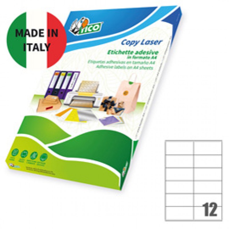Etichette adesive LP4W - in carta - con margini - permanenti - 105 x 48 mm - 12 et/fg - 100 fogli - bianco - Tico