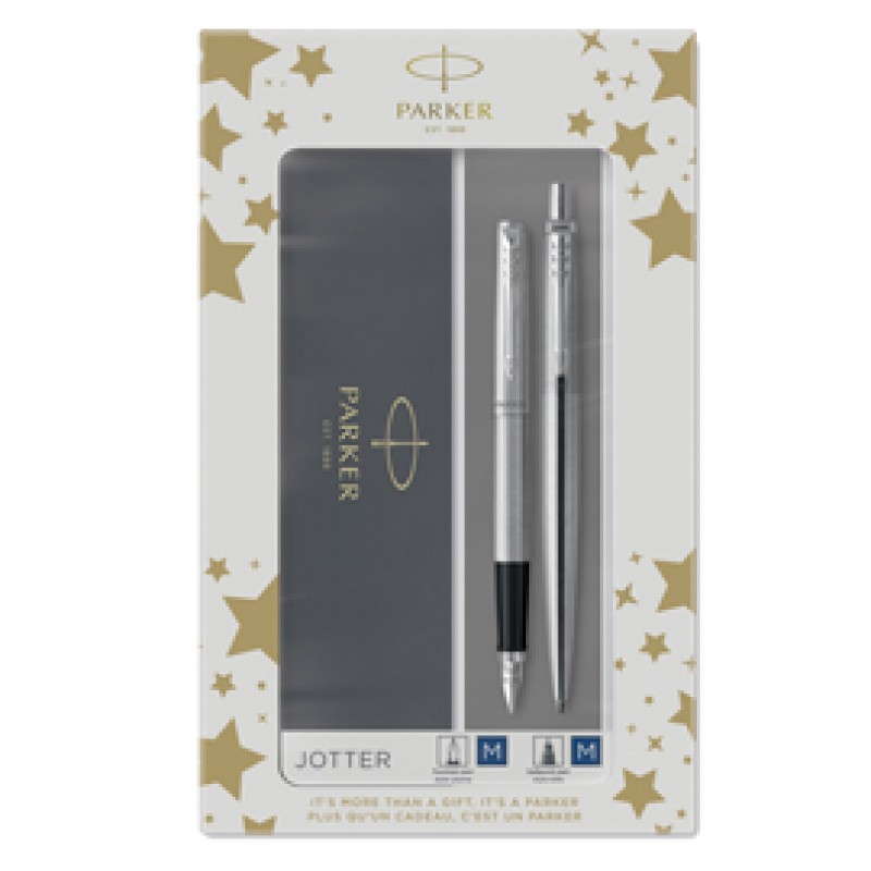 Gift Set DUO - Jotter stainless steel CT sfera + stilografica - punta media - Parker