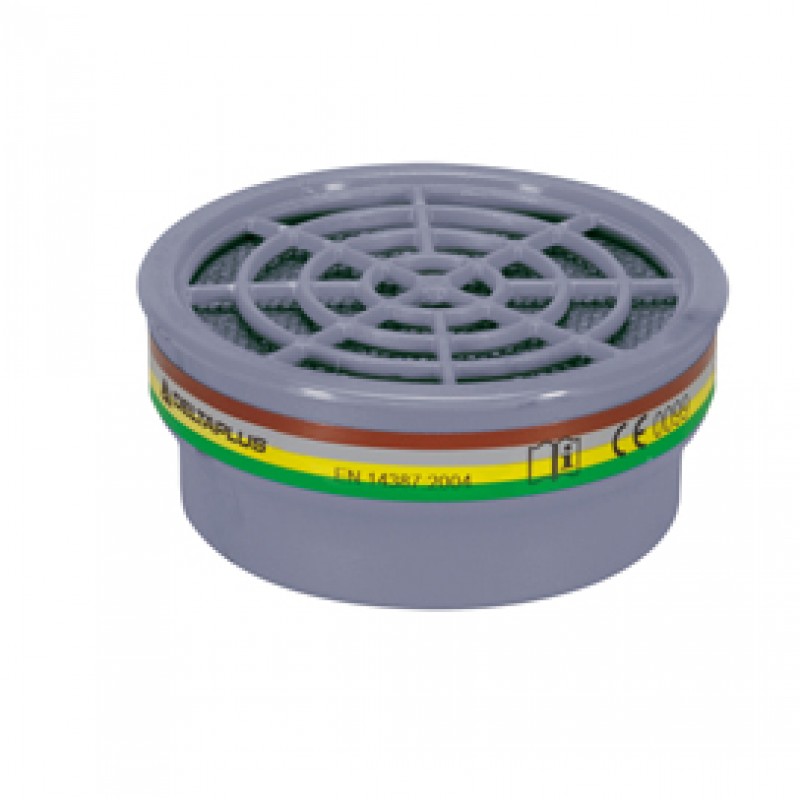 Kit 2 filtri A1B1E1K1 di ricambio per semi-maschera M6400. Guscio in plastica e carboni attivi. Protezione da Gas e vapori organici, inorganici, gas acidi, ammoniaca e derivati. Livello di protezione A1B1E1K1. Codice colore del filtro: marrone, grigio, giallo, verde. Categoria DPI: 3. Certificazione CE. Conformità alla norma EN14387:2004+A1:2008.