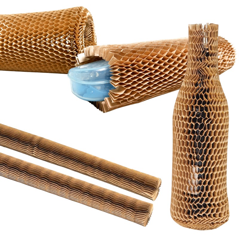 Manicotto in carta alveolare. Eccellente imballaggio pratico ed efficiente. 100% biodegradabile, la sua struttura esagonale offre una protezione antiurto elegante e raffinata, riutilizzabile più volte. Grammatura 70gr.