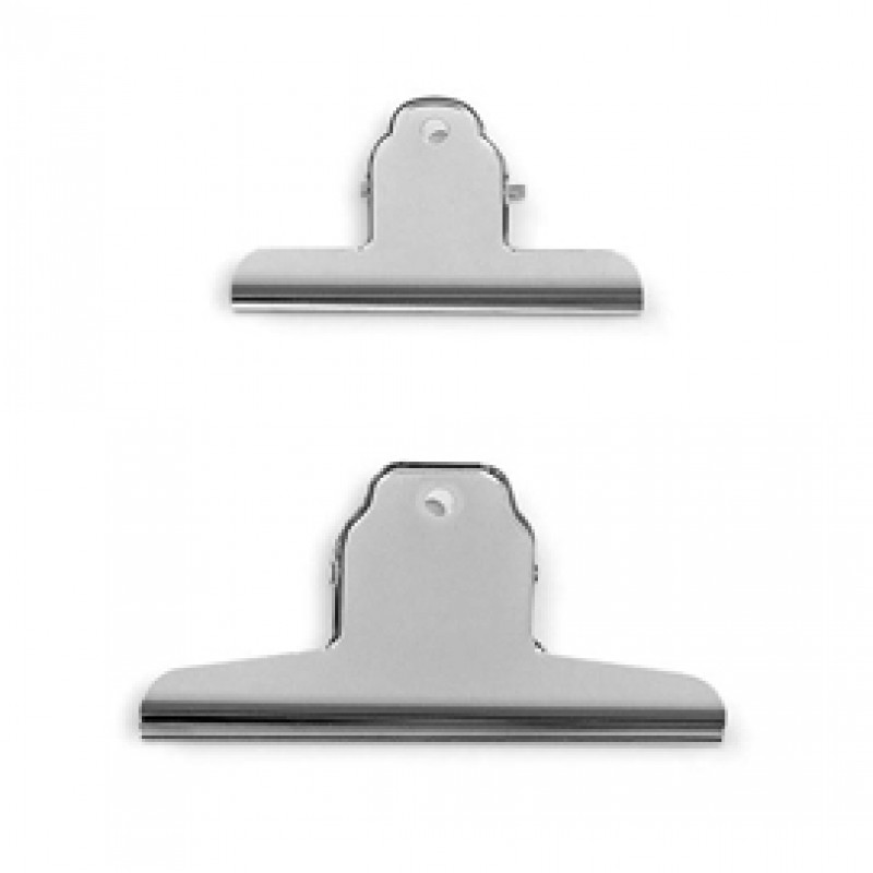 Clip in acciaio cromato per alti spessori. Foratura per eventuale affissione. Larghezza 15cm.