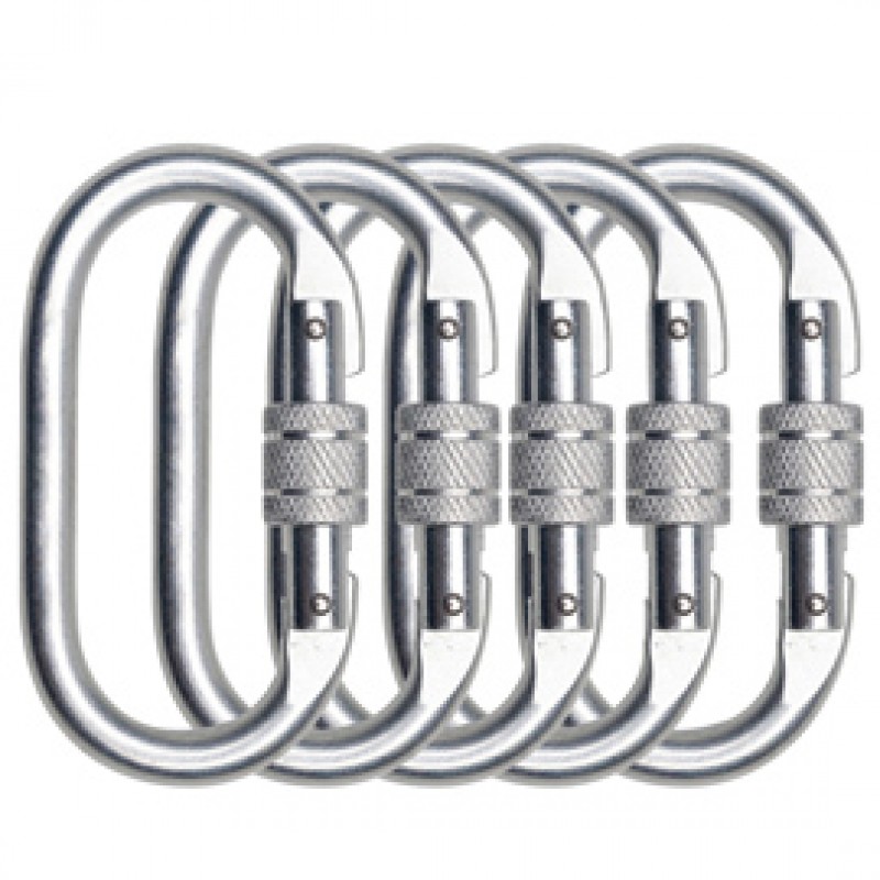 Kit da 5 moschettoni a vite in acciaio con apertura 16mm. CE - EN 362.