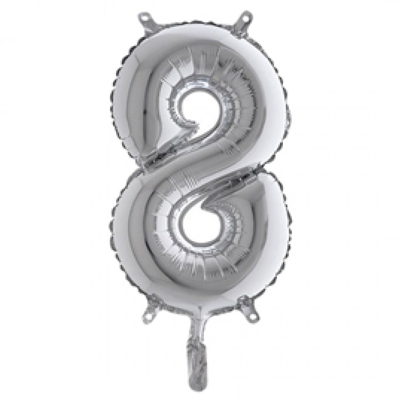 Palloncino - numero 8 - H 36 cm - mylar - argento - Big party