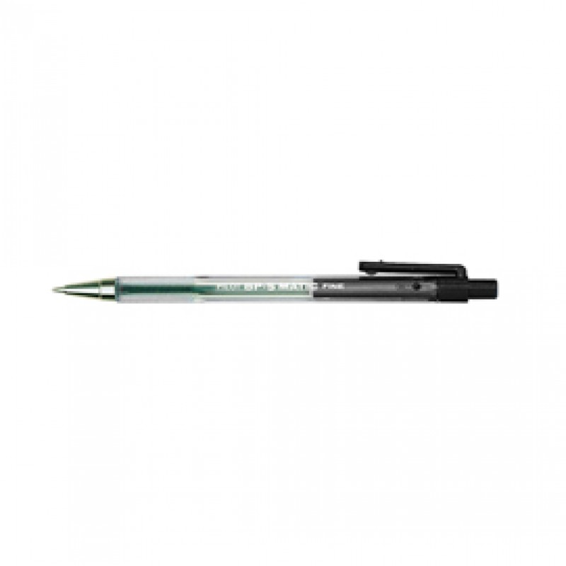 Penna a sfera a scatto con puntale in metallo. Fusto trasparente con scanalature antiscivolo. Sfera in carburo di tungsteno. Inchiostro a base d'olio. Ricaricabile, cod 68166.