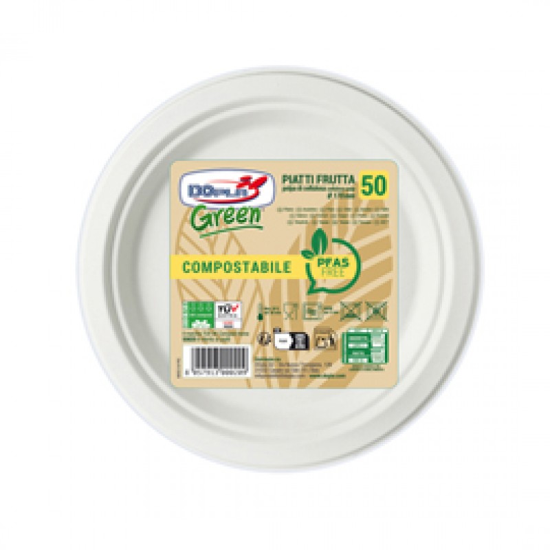 Piatto frutta monouso - rotondo - diametro 17 cm - cellulosa - bianco - Dopla Green - conf. 50 pezzi