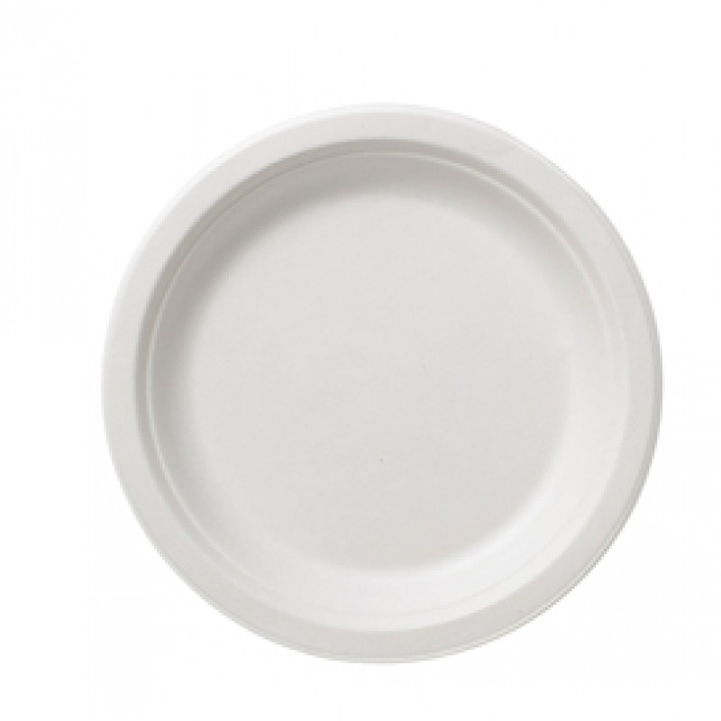 Piatto piano monouso Bio - rotondo - diametro 22,5 cm - cellulosa/canna da zucchero - bianco - Leone - conf. 50 pezzi