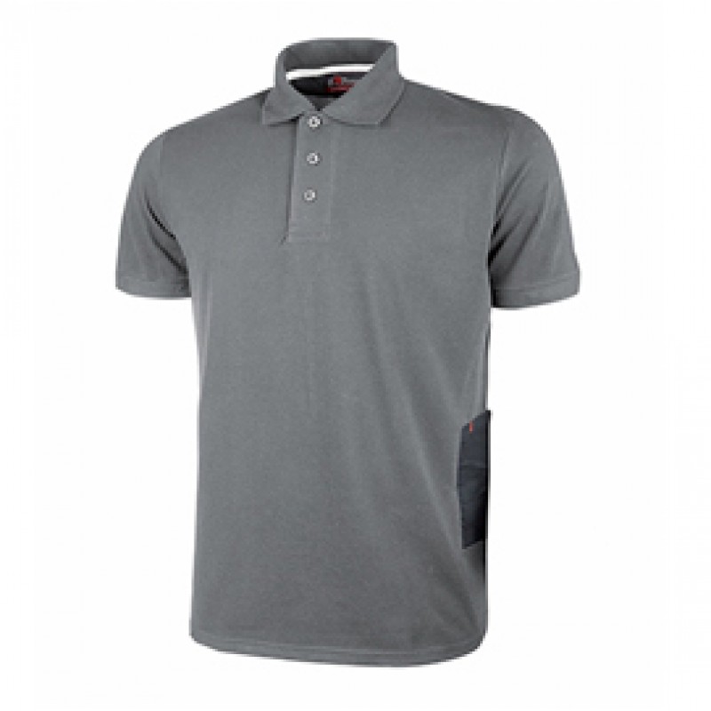 Polo, manica corta, in piquet di polycotone. Slim fit. Collo e bordo manica a costine elasticizzate. Collo chiuso da tre bottoni in tono. Fettuccia para- sudore bianca. Tasca porta cellulare sul fianco sinistro con travetta rossa. Nastro rosso/reflex su colletto nella parte posteriore sulla manica destra. Per Agricoltori, Autotrasportatori, Carpentieri, Elettricisti, Idraulici, Imbianchini, Installatori, Magazzinieri, Meccanici, Muratori, Pescatori. Confromità alle norme CEE, EN ISO 13688:2013