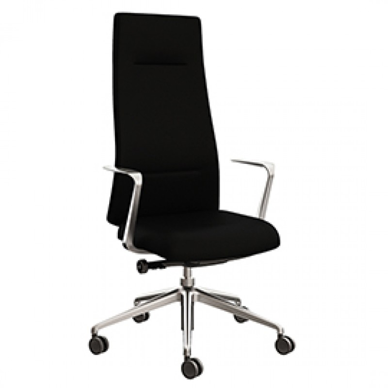 Poltrona direzionale imbottita. Elevazione a gas, contatto permanente, meccanismo synchro multiblock schienale con ritorno controllato, con 4 blocchi antishock, traslatore sedile. Gas certificato TUV; EN 1335 C 2020. Portata massima 140kg. Braccioli inclsi fissi in alluminio. Base alluminio. Dimensioni: Altezza totale: 121-133cm; Profondità: 70cm; Altezza seduta da terra: 45-56cm; Larghezza sedile: 53cm (62cm con braccioli); Profondità sedile: 46-54cm; Altezza schienale: 75cm; Larghezza schienale: 50cm; Altezza braccioli da terra: 64-75cm; Base Ø 70cm.
