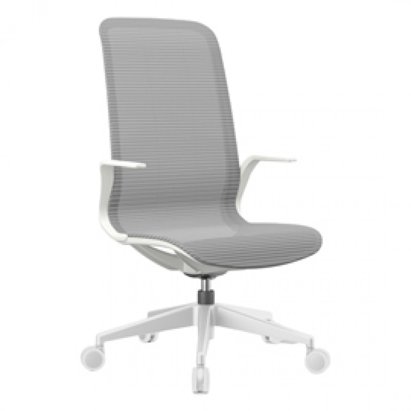Poltrona direzionale girevole con elevazione a gas - meccanismo oscillante - base alluminio. Rivestimento seduta in rete bianca. Braccioli inclusi (non rimovibili). Alt.tot.: 117-127; Prof.tot.: 70; Alt.schienale: 67; Larg.schienale: 46; Larg.seduta: 49; Prof.Sedile: 46; Altezza sedile: 48 - 58.