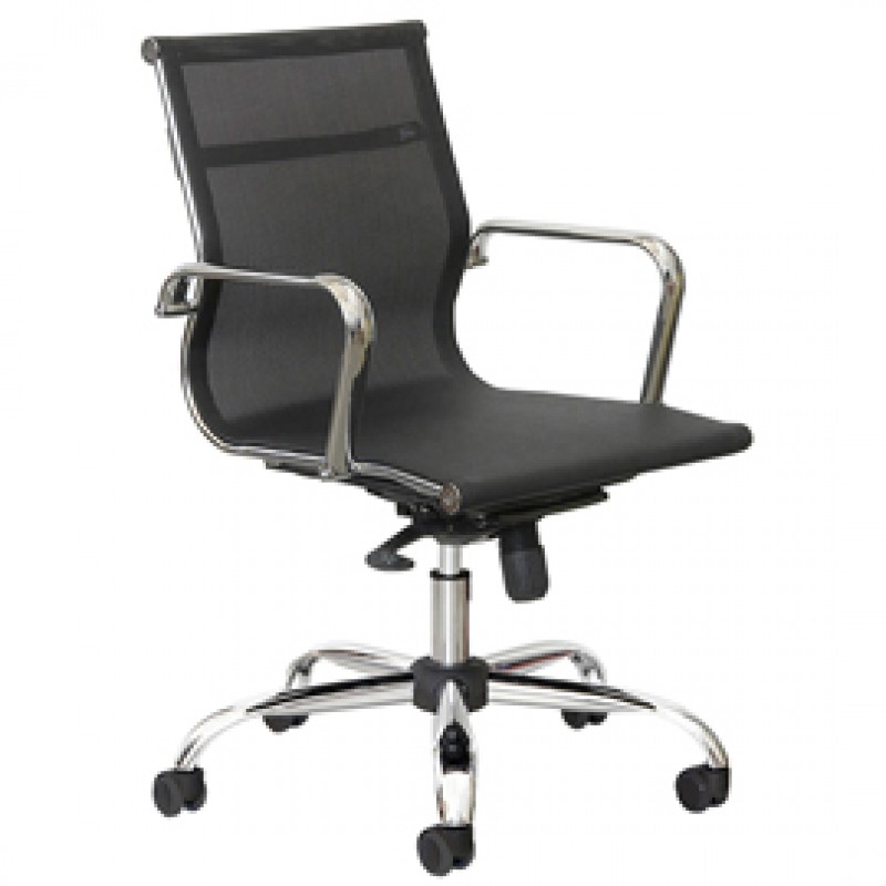 Poltrona direzionale girevole con elevazione a gas - meccanismo oscillante con blocco. Rivestimento seduta in rete di colore nero. Braccioli inclusi (non rimovibili). Alt.tot.: 91-103cm; Prof.tot.: 66cm; Alt.schienale: 53cm; Larg.schienale: 46cm; Larg.seduta: 48cm; Prof.Sedile: 45cm.