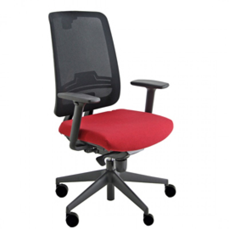 forza a contatto - supporto lombare regolabile - schienale in rete col. nero. Rivestimento seduta in tessuto "PLUS - Ignifugo standard" in fibra modacrilica e reazione al fuoco classe 1. Completa di braccioli regolabili. Alt.tot.: 108-118cm; Prof.tot.: 68cm; Alt.schienale: 64cm; Larg.schienale: 50cm; Larg.seduta: 50cm; Prof.Sedile: 47-52cm; Altezza sedile: 43 - 55cm.
