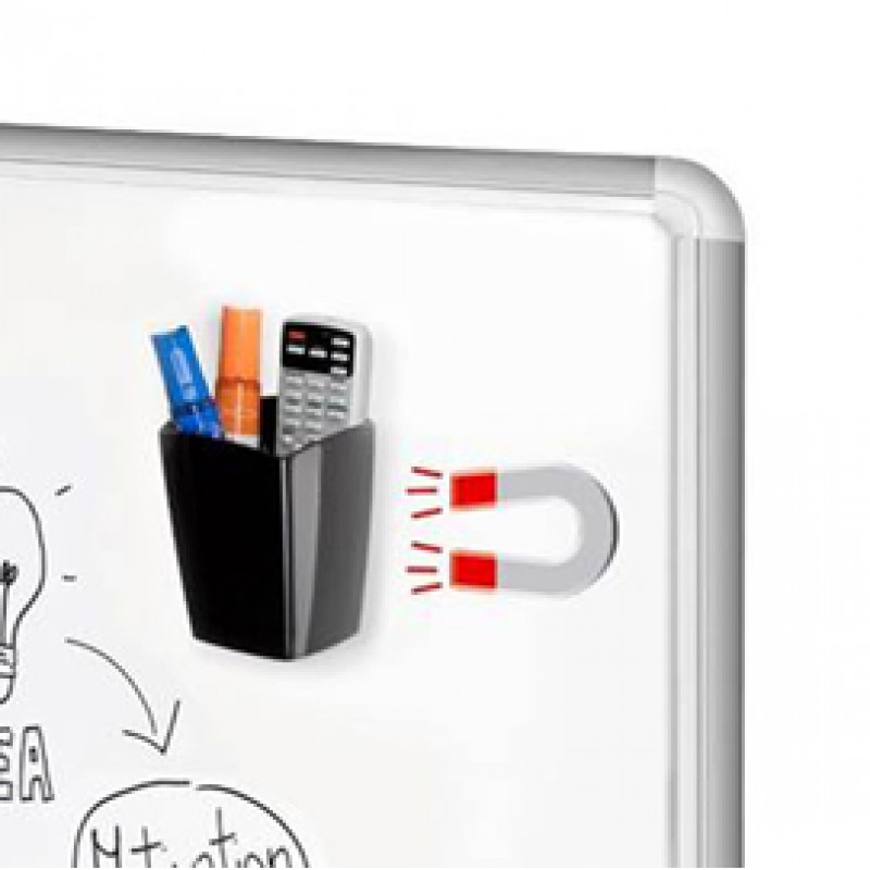 Robusto portapenne a 2 scomparti, dotato di una potente calamita. Ideale per lavagne bianche o superfici metalliche. Portata fino a 300g. Capacità fino a 10 pennarelli. 100% polystirene riciclabile. Dimensioni.: 78 x 74 H 95 mm. Non compatibile con lavagne magnetiche in vetro.