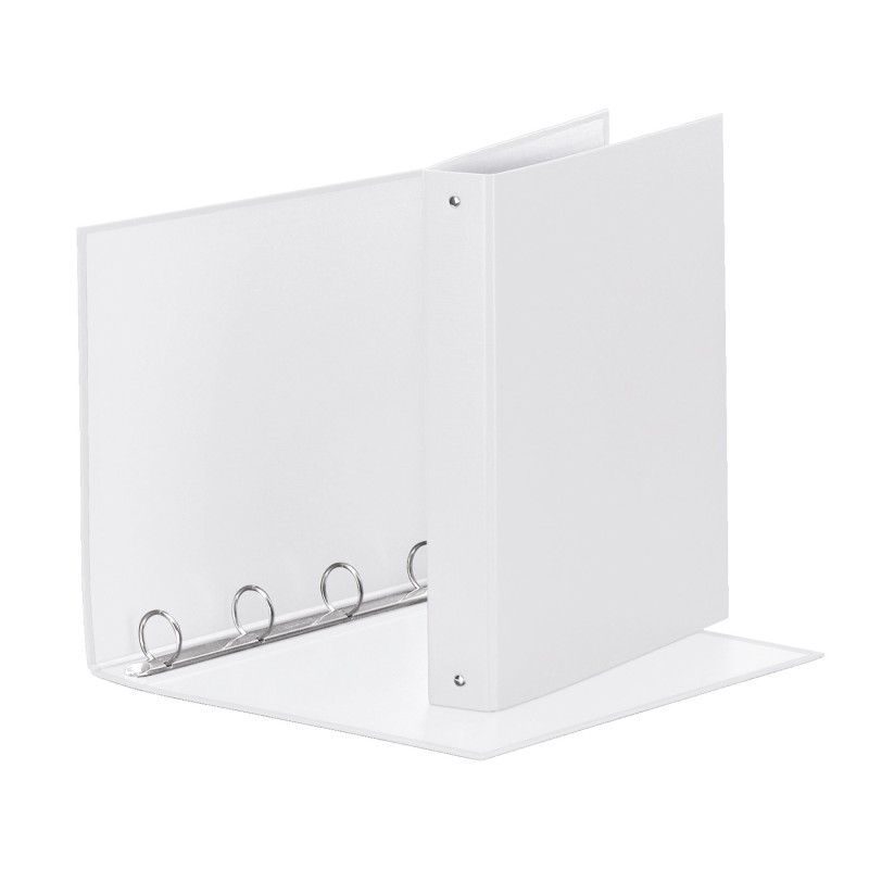 Raccoglitore in robusto cartone da 2 mm di spessore rivestito in polipropilene (bianco internamente). Solidità e affidabilità dei materiali rendono il prodotto ideale per un uso intensivo domestico o in ufficio, mentre il rivestimento fornisce eleganza e gradevolezza al tatto. Meccanismo a 4 anelli tondi (diametro 30 mm). Formato utile 22x30 cm. Dimensioni esterne 27,5x31,5x4,5 cm. Capacità 200 fogli (da 80 gr/mq). Colore bianco.