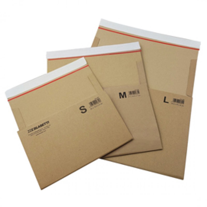 Scatola automontante ad altezza variabile in cartone microonda avana certificato FSC. Lembo adesivo protetto da strip. Sistema di apertura facilitata. Doppio adesivo per chiusura interna alette.