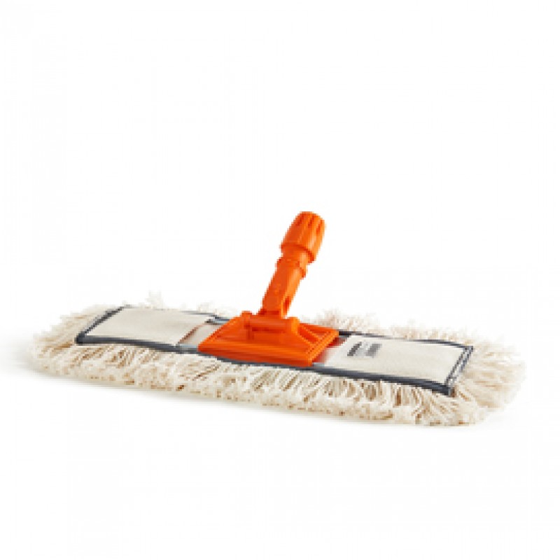 Scopa raccoglipolvere industriale con frangia di cotone da 60cm e finiture di rinforzo. Ideale per medie e grandi superfici. Composta da telaio + frangia (manico non incluso).