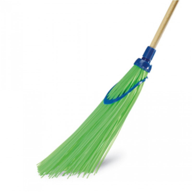 scopa in plastica verde senza manico con ghiera con struttura a zampa di lepre. Maneggevole, resistente nel tempo. Ideale per operatori ecologici, giardinaggio, hobbystica, imprese stradali, cantieri edili, industria. Con filato ingabbiato su supporto plastico. Adatta con manico 0035 (cod.74104).