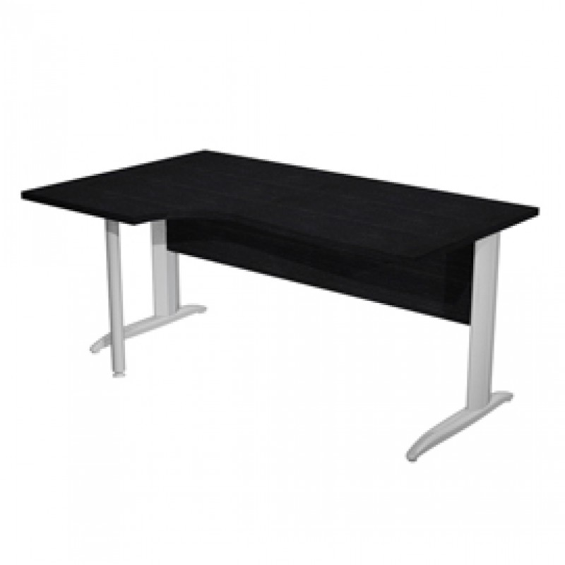 Scrivania compact sinistro sagomata con fianchi metal ad L verniciati effetto cromo. Spessore 22mm. Completi di canalina passacavi e piedini regolabili in altezza e supporto metal. Desktop con bordo anti urto in ABS da 2mm. Dimensioni: 160x60/80/100x72cm. Piano nero venato frassino.