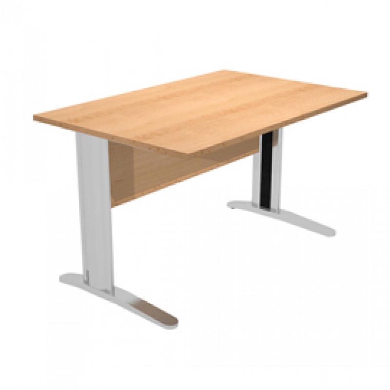 Scrivanie con dimensioni conformi alle normative sulla sicurezza dei posti di lavoro in ufficio. Bordatura dei piani in ABS 2mm antishock ed assenza di spigoli vivi. Le scrivanie sono disponibili nella versione con fianchi pannello in melaminico (sp. 22 mm) o con fianchi in metallo ad L verniciati effetto cromo completi di piedini regolabili in altezza e canalina passacavi ispezionabile. Dimensioni: L120 x P80 x H72cm