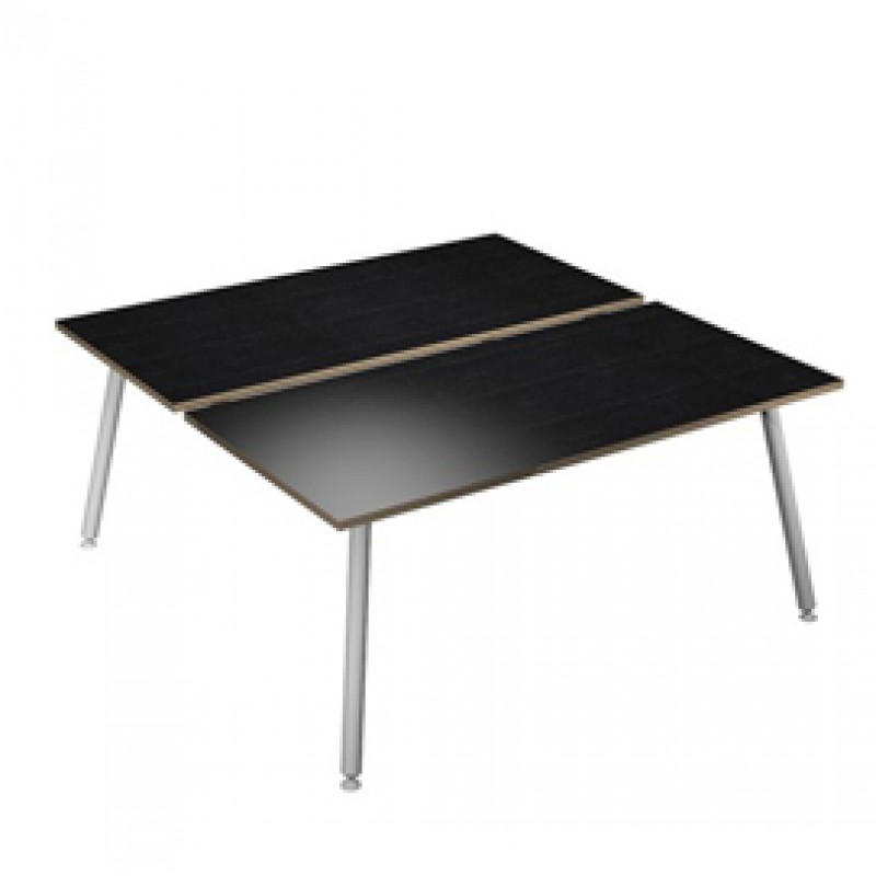 Materiale bilaminato nobilitato melaminico spessore 22 mm conforme norme UNI e EN classe E1. Scrivanie con piani antigraffio e antiriflesso, stabili e robuste grazie alla struttura rafforzata da quattro travi in metallo di collegamento fra le gambe.