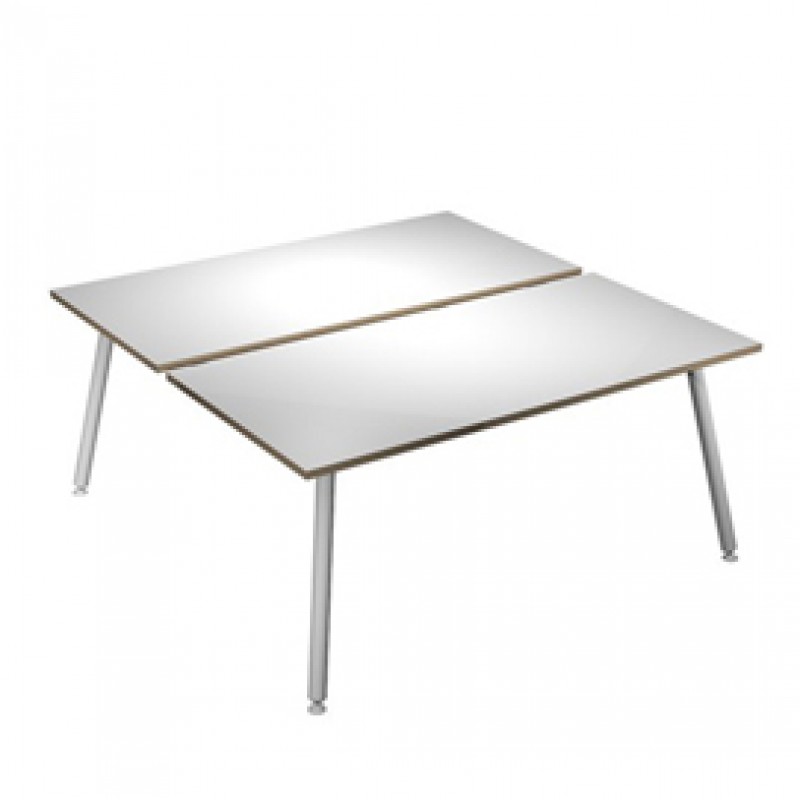 Linea di arredo operativo dal design innovativo e dinamico caratterizzata dalle gambe in metallo cilindriche inclinate delle scrivanie e dei tavoli rotondi. Robusti piani in melaminico sp. 22 mm con bordo antishock resistente agli urti in ABS 3 mm. Gambe in metallo verniciato bianco (diam. 50 mm) complete di piedini livellabili in altezza.