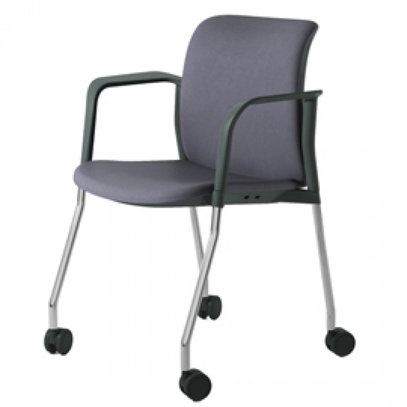 Seduta visitatore100% polipropilene con 4 gambe struttura cromata su ruote. Completa di braccioli. Rivestimento in tessuto "PLUS - Bondai" 100% poliestere no flame e certificazioni di infiammabilità 1.IM UNI 9175. Alt. tot: 82cm; Prof.tot: 52cm; Alt.schienale: 40cm; Largh.schienale: 42cm; Largh. sedile: 45cm; Prof.sedile: 47cm; Alt.sedile: 46cm. Certificazioni: EN 16139: 2013.