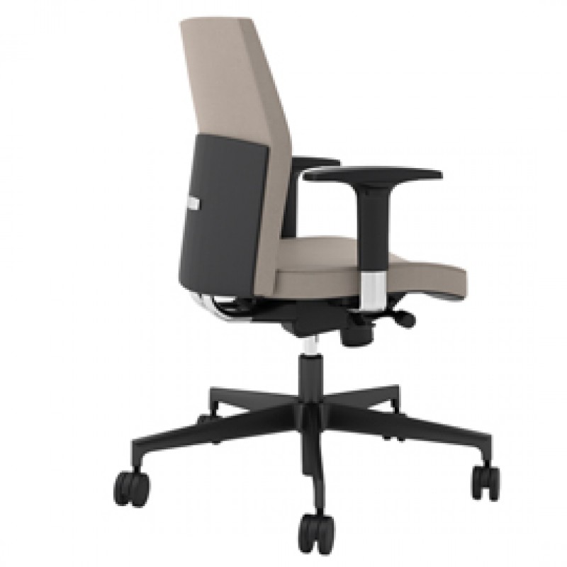 Seduta operativa girevole - elevazione a gas - meccanismo Syncro - 4 blocchi anti shock - meccanismo a contatto permanente - regolazione schienale up-down. Rivestimento seduta in tessuto "FASHION - Salò" 100% poliestere e certificazione di infiammabilità 1IM UNI 9175 EN 1021. Completa di braccioli regolabili. Alt.tot.: 98-109cm; Prof.tot.: 68cm; Alt.schienale: 55cm; Larg.schienale: 45cm; Larg.seduta: 46cm; Prof.Sedile: 46cm; Alt. sedile: 41-52cm.