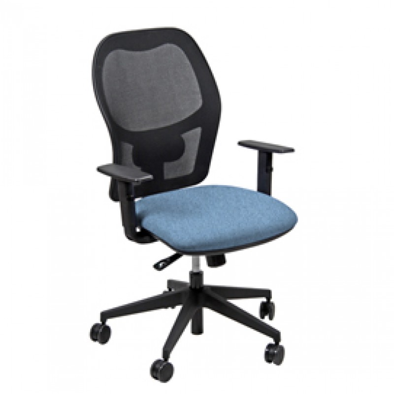 Seduta operativa girevole con elevazione a gas, meccanismo syncro, 4 blocchi anti shock e meccanismo a contatto permanente. Schienale con supporto lombare regolabile. Completa di braccioli regolabili. Rivestimento in tessuto "FASHION - Chili" 75% poliestere riciclato e certificazione di infiammabilità 1IM. Alt.tot: 102-113cm; Prof.tot: 68cm; Alt.schienale: 60cm; Largh.schienale: 48cm; Largh.sedile: 48cm; Prof.sedile: 46cm; Alt.sedile: 42-54cm.