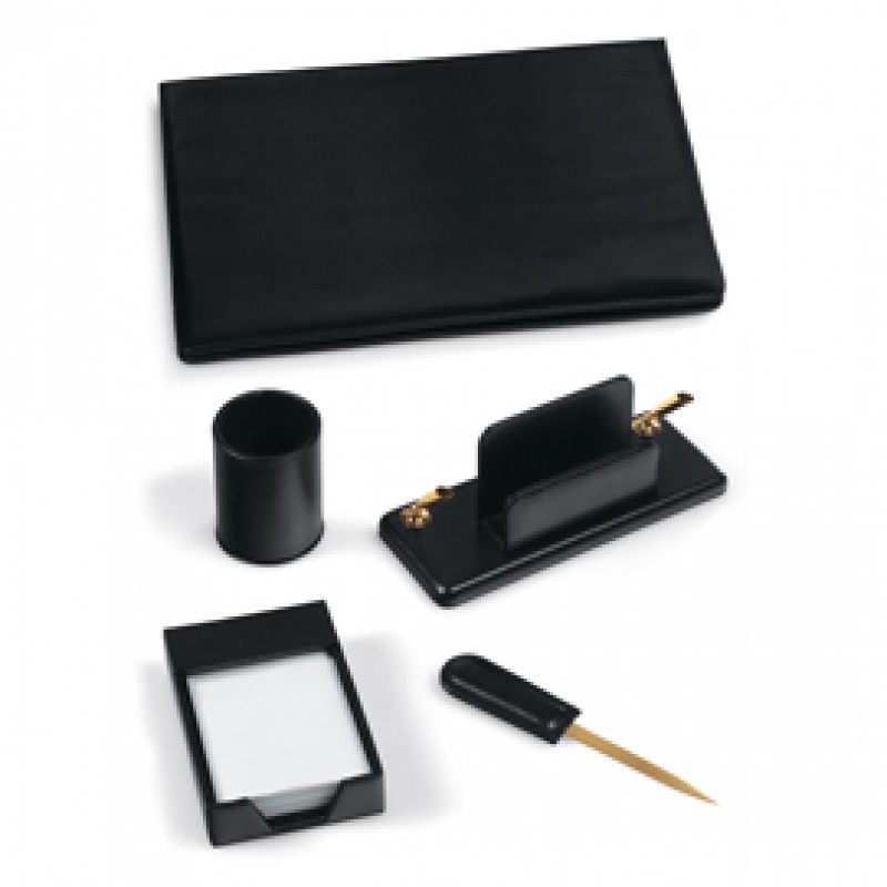 Set scrittoio in similpelle morbido composto da 5 pezzi: apribusta, portapenne, portafoglietti, portastilofori e sottomano doppio cm.35x50.