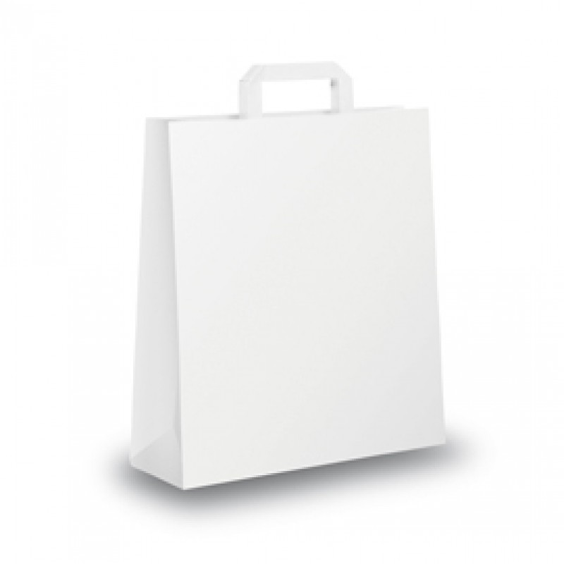 Shopper - maniglia piattina - 18 x 8 x 25 cm - carta kraft - bianco - Mainetti Bags - conf. 25 pezzi