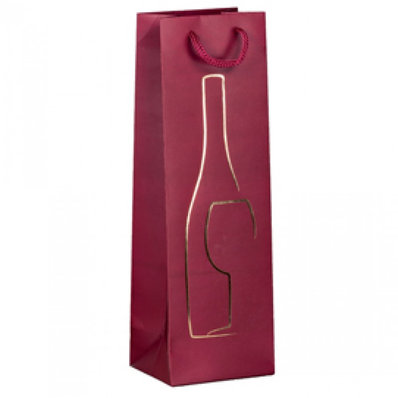 Shopper portabottiglie in carta patinata 190 g/m2. Dotato di manici in corda. Stampa oro a caldo.