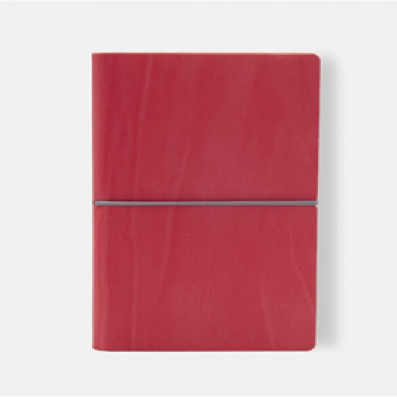 Taccuino con copertina in sintetico effetto liscio. Morbida, resistente e flessibile. Chiusura con elastico orizzontale. Carta riciclata colore avorio. Fatto a mano in Italia.