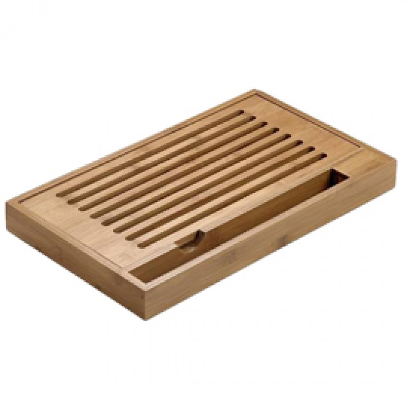 Tagliere antibriciole in bamboo. Dimensioni: 40x24x4cm. Idoneo al contatto con tutti tipi di alimenti. Lavabile a mano.