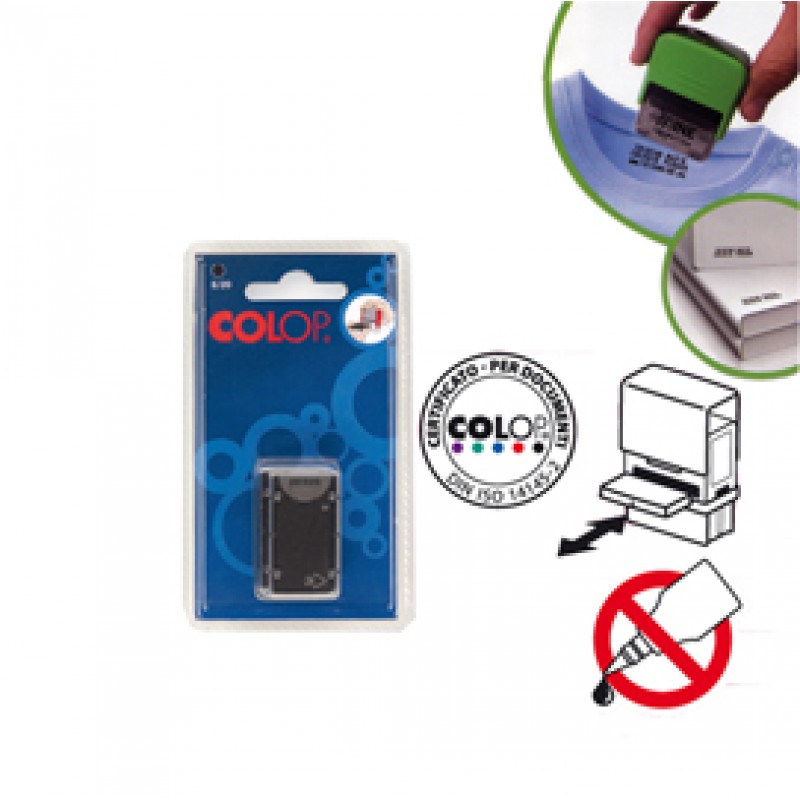 Tampone per timbri autoinchiostranti. Inchiostro speciale per timbri come cotone e poliester. Resistente a numerosi lavaggi anche a 90gradi. Può effettuare circa 1000 timbrature. Montabile sul timbro Mine Colop cod. 72045.