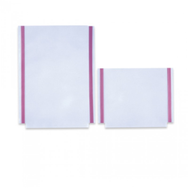 Tasche in PP buccia altissimo spessore con due strisce adesive sul retro. Contengono fino a 200 fogli. Applicabili su cartelle e raccoglitori e altri supporti lisci quali vetro e metallo. Formato utile 22x30cm.