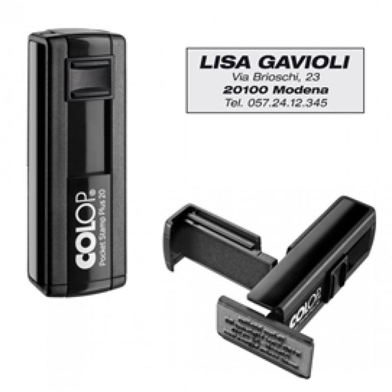 Timbro personalizzabile tascabile COLOP POCKET STAMP PLUS Un vero tascabile di qualità. Prestazioni ad alto livello e design elegante: un oggetto piacevole, oltre che utile. Nelle misure e nelle forme più diverse, per sottolineare la propria personalità in modo più deciso.TAMPONE DI RICAMBIO: E/PSP20