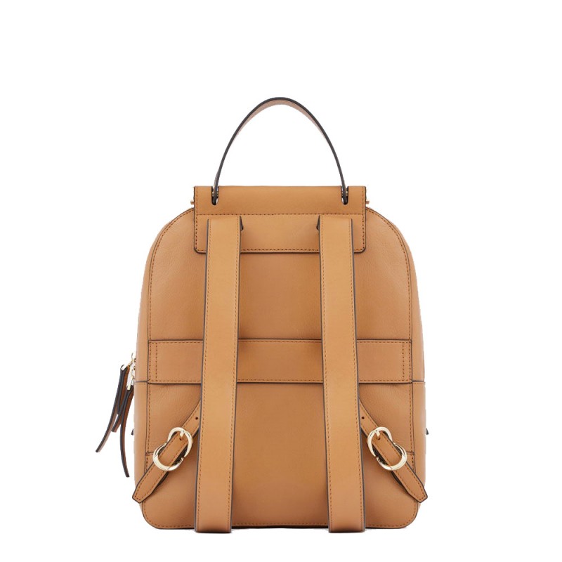 Zainetto porta computer e porta iPad®Pro 12,9" Circle. Circle esprime l'essenza della femminilità contemporanea grazie al pellame di vitello dalla grana sottile ma morbida, alla rotondità delle forme, ai sofisticati e preziosi accessori metallici dalla finitura oro chiaro lucido, e alle tonalità di colore con coste tinte a mano in contrasto. Questa collezione rispecchia una donna impegnata ed elegante, alla ricerca di praticità e ricercatezza.