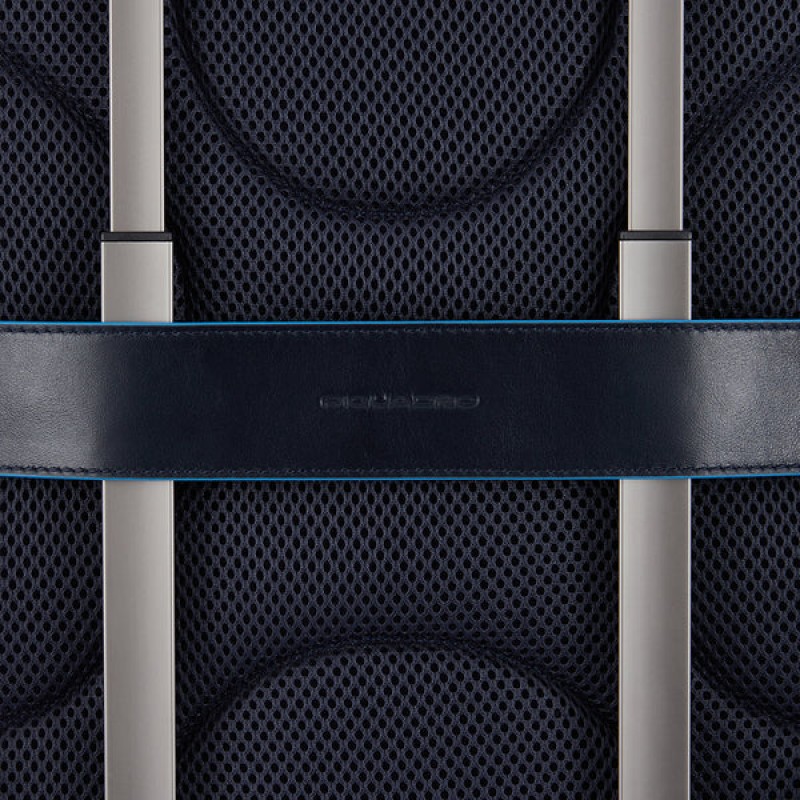 Zaino porta PC e porta iPad® con cavo antifurto, tasca per AirPods®, porta bottiglia, protezioni antiurto e anti frode RFID. La collezione Blue Square è realizzata in vitello con conciatura minerale. Il sistema tradizionale di concia mantiene inalterata la bellezza della pelle negli anni. I bordi a taglio vivo, dipinti a mano in azzurro, vivacizzano il carattere business della collezione e rappresentano un elemento distintivo di grande riconoscibilità.